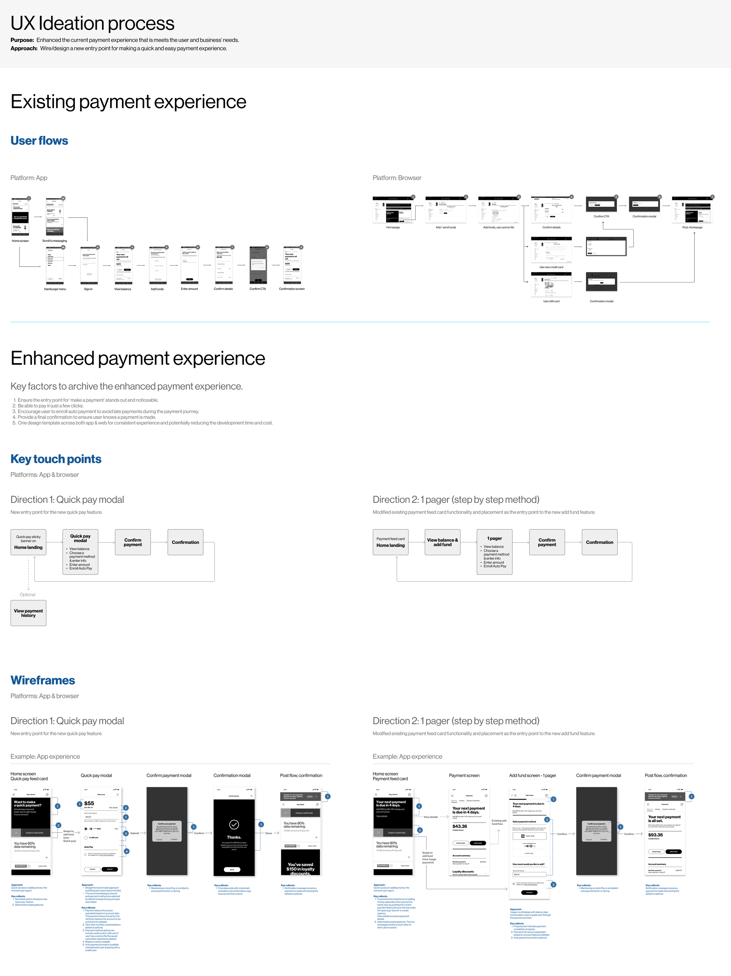 After understanding the user and business’ goals, I carefully identified potential opportunities for improvements by analyzing the current marketing strategies in place. With these insights, I came up with two approaches to enhance and simplify the current payment process. After presenting the initial ideas to the creative team, we collectively decided to proceed with the "Quick Pay Modal" approach. Our team then worked together to elaborate on and advance the overall user experience.